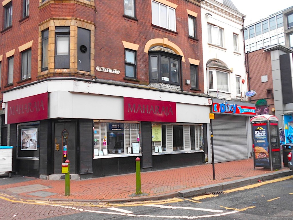 Having passed The Maharaja Indian Restaurant and the Dixie Chicken fast food cafe in Hurst Street on the corner of Thorp Street we can find the location of our next lost building.
