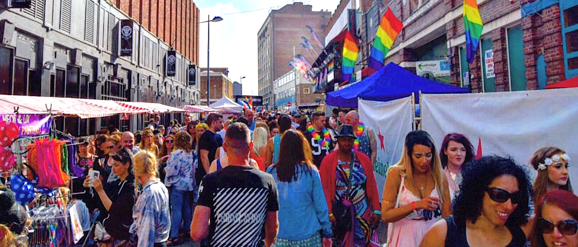 Annually over the Spring bank holiday weekend upwards of 70,000 people flock to the area for Birmingham Pride, mainly centred in and around Hurst Street. Birmingham Pride was the largest free Pride event in the UK. Usually there are entertainment acts, market stalls, fairground attractions and a parade, and in 2012, charges were introduced for access to the entertainment marquees, tents and certain areas of some bars. In the following year, the charge was expanded to include entrance to the Gay Village.