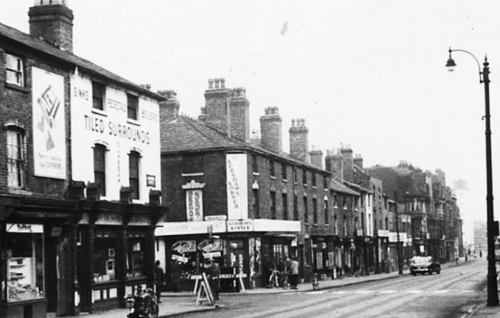 This photograph was taken from Bromsgrove Street, in 1957 looking east with Pershore Street on the left. About 8 years later the Silver Blades would be built on the left side of the road beyond the junction. The shop selling tiled surrounds (to the left) was at one time the pub called the Stag and Pheasant. It seems that the ‘Stag and Pheasant’ was where two constables were attacked by peaky blinders in 1895. More recent views of the same junction can be seen above.
