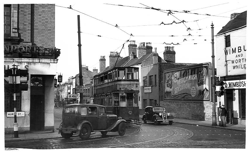 If we had crossed Bromsgrove Street here in the 1950s we would have had to look out for trams coming from our left and from the right down Hurst Street, as this is where the trams heading to and from the Moseley Road and Alcester Road routes ran. There were traffic lights, but nothing to help pedestrians get over the road at this busy junction.