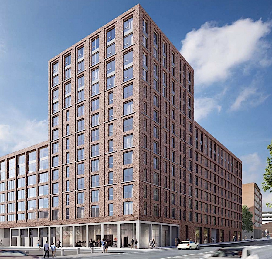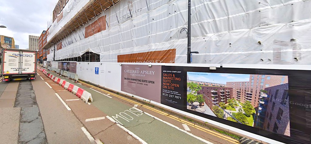 At the time of writing (2021), situated between Claybrook Street and Skinner Lane is the 1¾ acre building site of the Timber Yard , which for many years had been a large outdoor car park. The completed building will comprise of two residential buildings which will boast a collection of 379 modern apartments. The East Block, facing pershore Street, is the the first release, and will feature one, two and three bedroom apartments. The West Block will include a mix of studio, one and two bedroom apartments, and landscaped courtyard gardens will be surrounded by the two buildings.