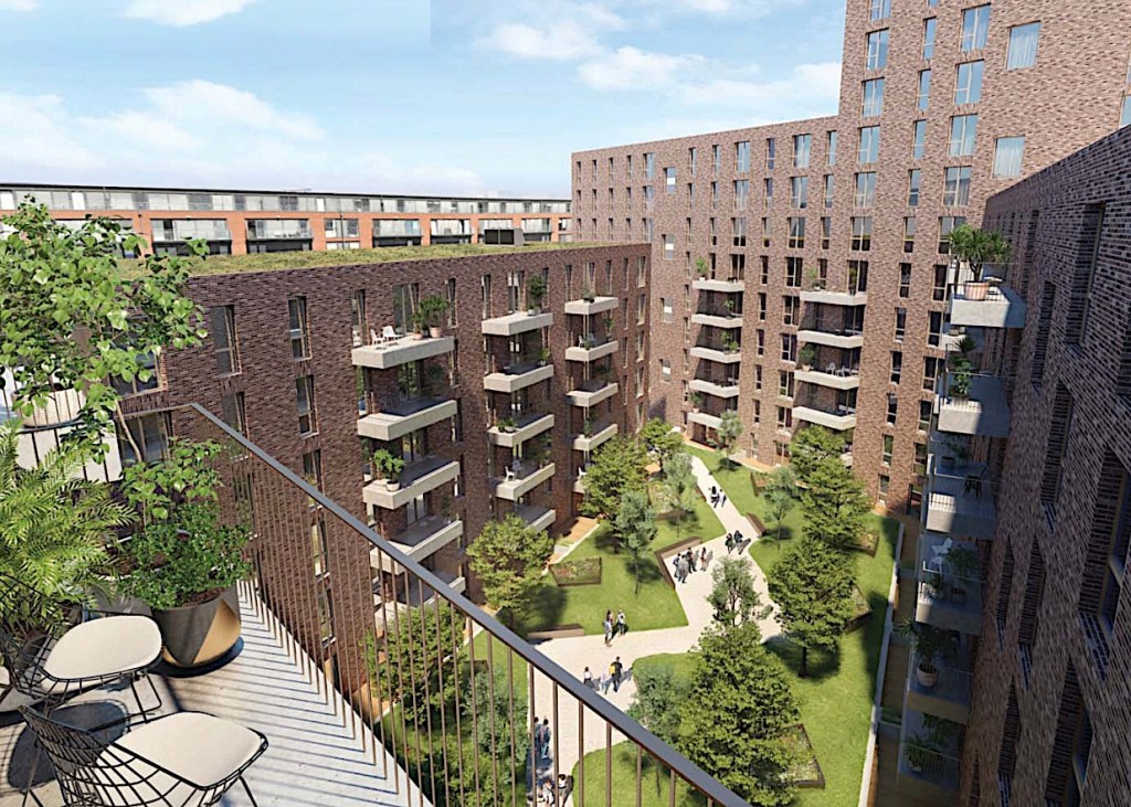 Above we have the construction site in 2012, towering over Hurst Street. Below are a selection of drawings from the developer’s booklet showing the 12 storey block on Pershore Street and the gardens.