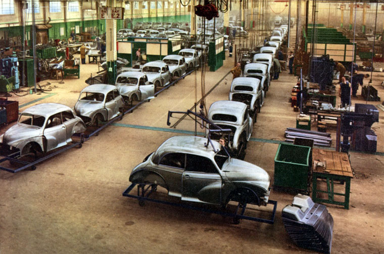 By 1945 Fisher and Ludlow had fourteen factories dotted about all over Birmingham and the West Midlands, then they were encouraged to take over the huge 103 acre aircraft factory in Erdington that had been built to produce Spitfire fighters and Lancaster bombers. The staff were engaged in moving the company’s huge presses from elsewhere, and preparing the “new” factory for motor car body production. In the 1950s they were producing bodies for Standard, Triumph, Morris and Austin. In 1953 Fisher & Ludlow became part of the British Motor Corporation (BMC) and a regular sight on the Outer Circle Bus route in the 1950s & 60s were lorry loads of Mini bodies being transported to Longbridge.